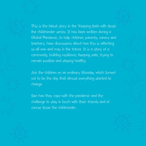 This is the latest story in the %u2018Keeping Safe with Susie the childminder series. It has been written during a Global Pandemic, to help children, parents, carers and teachers, have discussions about how this is affecting us all now and may in the future. It is a story of a community, building resilience, keeping safe, trying to remain positive and staying healthy.Join the children on an ordinary Monday, which turned out to be the day that almost everything started to change. See how they cope with the pandemic and the challenge to stay in touch with their friends and of course Susie the childminder.